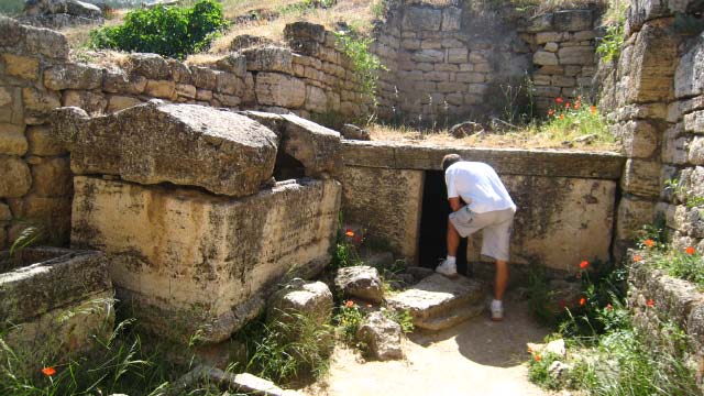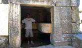![]() | Some tombs were open and we saw several stone couches upon which gifts were left and the dead were laid, often families. The entrance was sealed with a sliding stone. | ||||