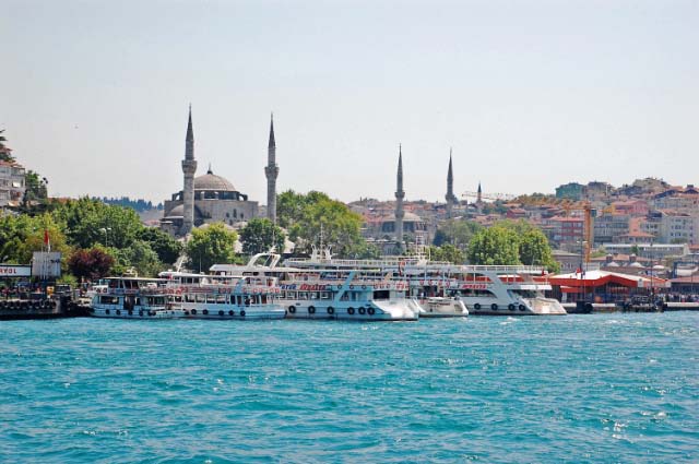 A boat ride up the river unfolded a great view of the city's landmarks including mosques, palaces and fortresses. One side of the river is Asia, the other Europe.