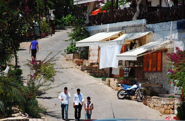 An imposing Lycian sarcophagi is right in the middle of the road as the town of Kas was built around many of these tombs. It dates back to to 450 BC belonging to the Roman age. These sarcophagi usually consist of three parts: a base, a grave-chamber and a crested 'Gothic' (pointed) lid.