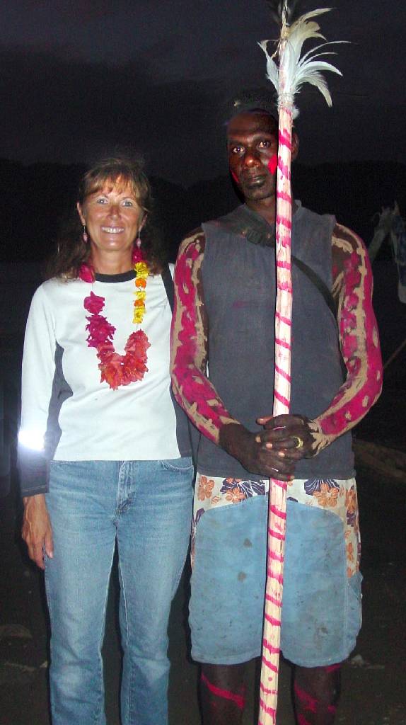 One of the men was more painted up than the others, he depicted the Chicken and seemed to lead the dance proceedings. (Ginny and Chicken Man pictured) |