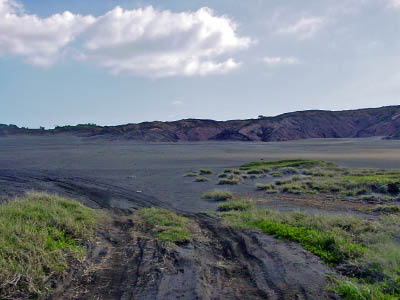 scene barren except for huge gray powdery ash dunes. | Mount Yasur As we traveled through this ash desert, we were treated to a "burp" from the volcano as it spewed smoke into the sky. |