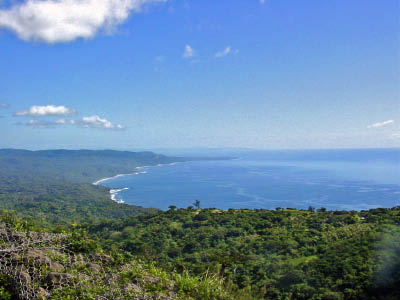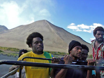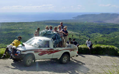 Once past the villages, the road climbed to an altitude that afforded us a terrific view of Tanna. Here's the whole group of us in the truck. |