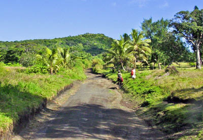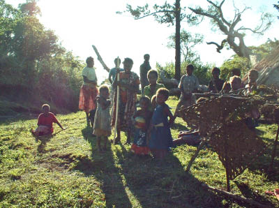 The road bypassed numerous grass-roofed villages at break-neck speed and the parade of local women along the road, wearing colourful Mother Hubbard dresses and headgear made of feathers or flowers, were constantly waving | |||