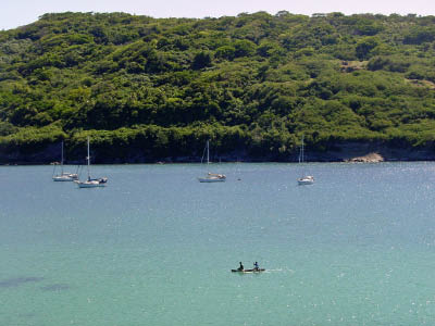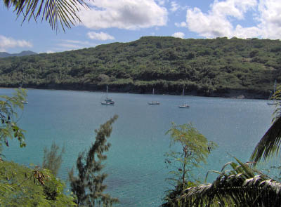 Sept 8, 2005 We were so happy to finally drop the hook in Port Resolution as the last day of the passage turned into a real ordeal, with 30 knot headwinds and steep seas. The water poured into the boat through our hatch and we had to remove the computer because it was getting soaked with salt water. Hence we didn't have our electronic navigation and even the Yoman was getting soaked with every wave. It was all I could do to keep the water soaked up with towels and waves broke full force over the deck and into the cockpit. | |