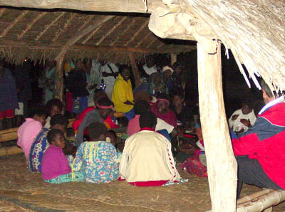 We arrived about 8 pm and the village was already engrossed in their ceremonies. After a brief intro with the chief, we were seated under a thatched roof which was actually the church, where a group of men sat in a circle playing guitars and singing, accompanied by some women sitting behind them. The music was very upbeat, although repetitive, we did not understand the words they were singing. | ||||