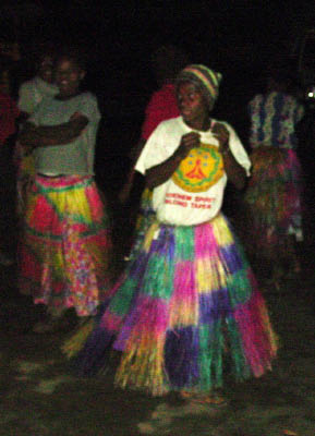 Then the guitar players went outside the building and resumed playing in a group at which time everyone stopped dancing. It was puzzling to us until it was explained that, when inside the church, the men were praying with song and the other villagers were praying with dance. We all got into the ritual and danced along with the locals. The song and dance actually continued on throughout the entire night until about 6am but we left around 10:30pm and headed back to the boats. | ||||