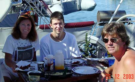 December 23, 2003 Todos Santos We decided to take a road trip to Todos Santos, which is about a 2 hour drive south down the Pacific side of the Baja coast. Chris from Twix came with us. Pictured here is Chris and Chris when we stopped in the town for lunch. |