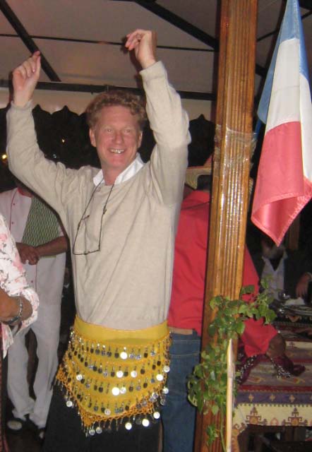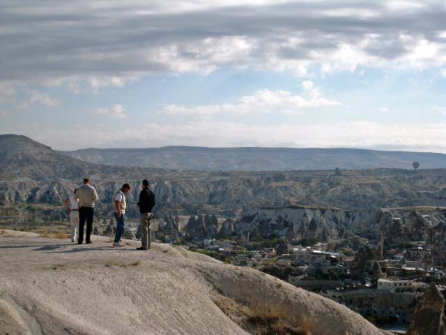 Around Goreme Town We had a full day of sightseeing and it was starting to get dark when we returned to Gorome. The town of Goreme is small and quaint with many little pensions scattered amidst the hilly surrounds. Lots of restaurants to choose from, but we soon found our favorite dig that served delicious borek and other Turkish delights by a very social cook and staff that soon became great friends. Bruce got right into party mode in the street to the beat of the Turkish music! | ||