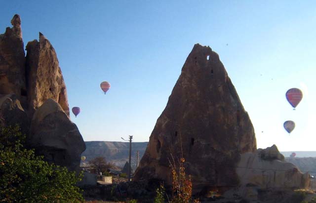 We checked into our room at Elifstar Hotel, which was a cave cut into the rock! From our little balcony, the bewitching view of the strange exotic landscape was complimented by the colorful hot air balloons gently floating overhead. |